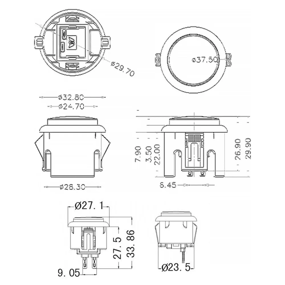Note: 24mm and 30mm refer to the installation hole diameter of the game console panel.